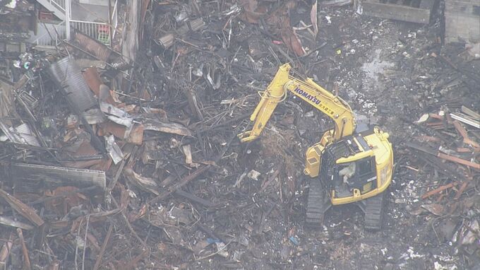 小倉北区魚町の火災現場では小雨が降る中、金属や木材などのがれきが次々と撤去されていきました。