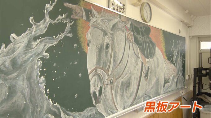 黒板アートを制作した美術部の生徒「明るくするためにチョークを溶かして絵具みたいにしたりとか、ここにぬって盛り上げたりとかして」「みんな通った時にすごいといってくれて、頑張った甲斐があったなと思って嬉しかった」