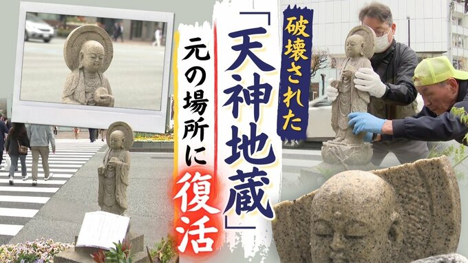 何者かに破壊された「天神地蔵」 修復され元の場所に復活 2024年4月11日(木) 17:48 国内 今年1月、何者かによって頭の後ろの部分が壊された状態で見つかった福岡市天神の「天神地蔵」です。修復作業が終わり、再び元の場所に復活しました。11日、約2か月ぶりに福岡市天神の街角に戻ってきた「天神地蔵…