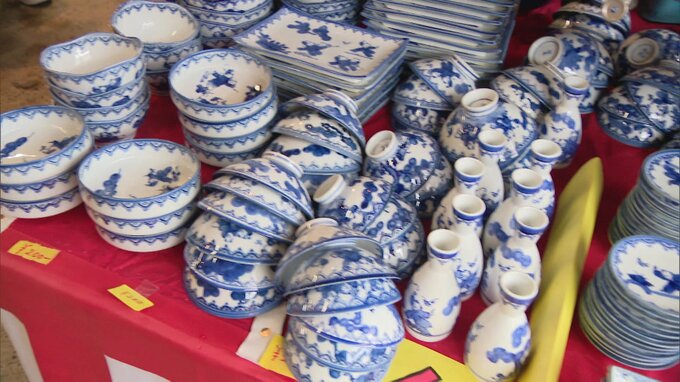 小野愛梨リポーター「こちらの有田焼きは、陶器市に合わせて通常の半額以下の値段で販売されています」。