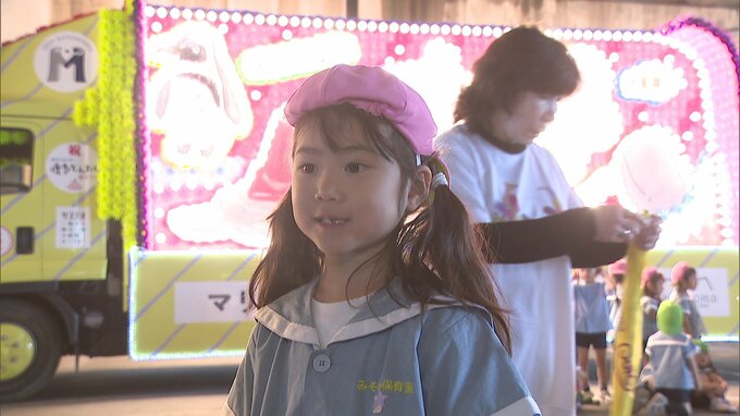 花自動車は1台につき約1000個の電球で飾られていて、色鮮やかなデザインに園児たちからは歓声が上がっていました。