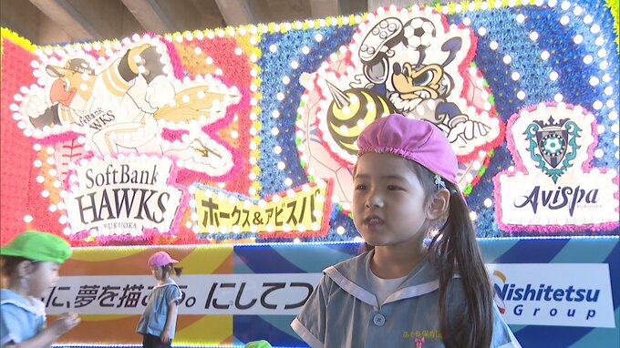 5月3日に開幕する「博多どんたく港まつり」で福岡市内を走る花自動車が、一足先に子どもたちにお披露目されました。