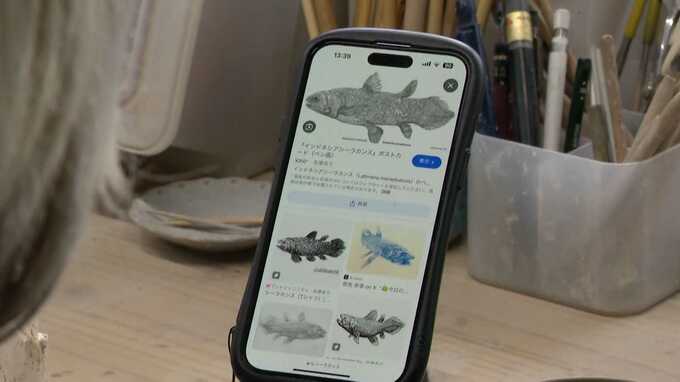 「シーラカンスを、ティーカップのソーサー付きで作ろうと思ってて、(スマホを)見ながら作っています」