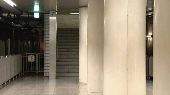 ホームから見てみると、確かに7番出口付近へと続く階段が。