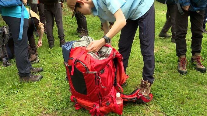 上級生のザックには飲み物や着替えテントなども入っていて、重さは10キロを超えます。