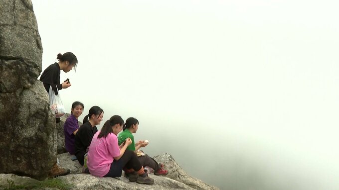 山頂は雲に覆われていましたが、部員たちの表情は晴れやかです。