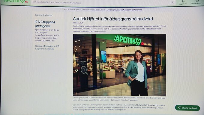 スウェーデンの薬局では今年3月、15歳未満がエイジングケア商品を購入することに規制をかけると発表しました。