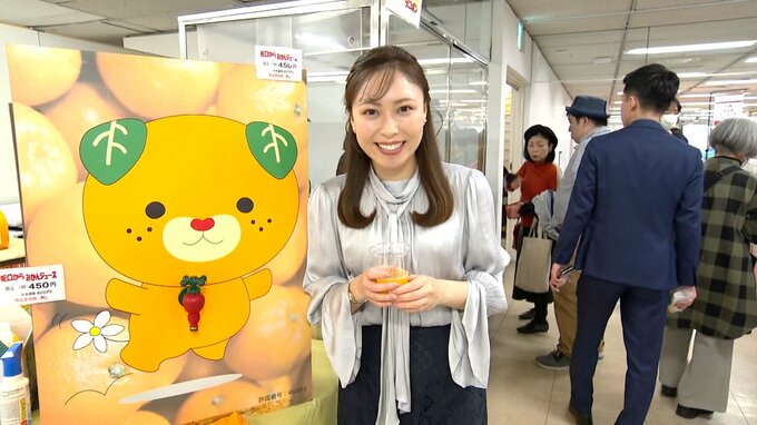 竹井りさリポーター「こちらでは、蛇口をひねると、みかんジュースが出てくるんです。このように体験型ブースも出店しているんです。」