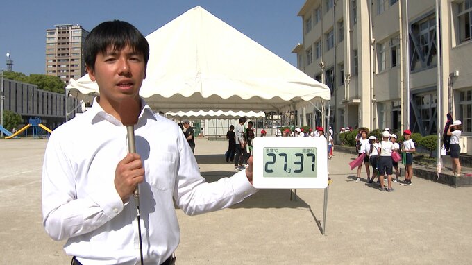 金子壮太記者「午後3時半現在の気温は27℃。5月初旬ですが太陽の光が強く照りつけています」