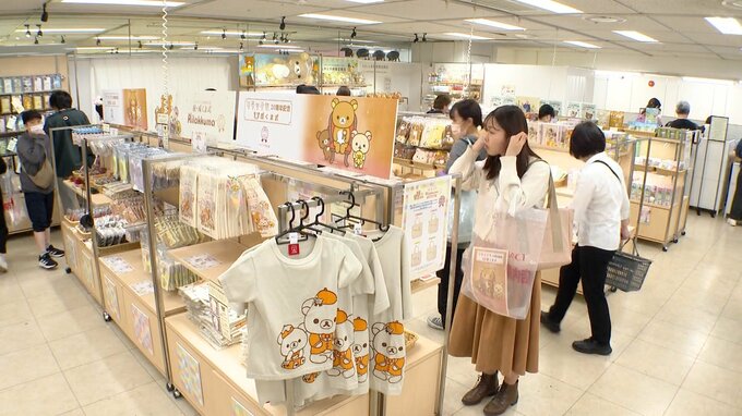 RKB竹井りさリポーター「ずらりとグッズが並んでいますがこちら福岡会場から新しいグッズが仲間入りします。それぞれ柄が違うのがかわいいですね」