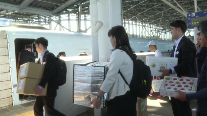 皮が柔らかい福岡のブランドトマト 新幹線に朝積み込んで東京へ→イベント会場で販売 2024年5月17日(金) 14:59 国内 全国の特産品を新幹線で東京駅に運んで販売するイベントに向けて、福岡県のブランドトマトや和菓子が17日、新幹線で発送されました。JR新鳥栖駅では17日朝、福岡県うきは市の「桜桃トマト」や人気の和菓子、サンド…