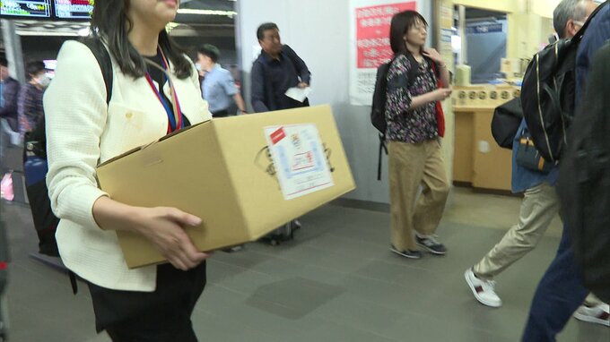 これらの特産品は、9時8分発のさくらで新大阪まで運んでこだまに積み替えられ、7時間40分後の午後4時48分に東京駅に到着。そのあとすぐ午後5時ごろから、東京駅のイベント会場で販売されます。