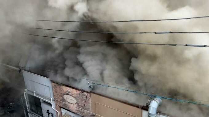 「到着して若干の白煙が確認できたので私たちは空いている店の店舗内を確認したり、屋根上に上って確認したりして、煙がでている原因をつきとめる検索活動をしていました。そうしていたところ約30分くらい経った時に急に白煙が大量に出てきまして建物全体から黒煙に変わって炎が打ちあがったという感じになります。私もあまり経験がない火災でした。」