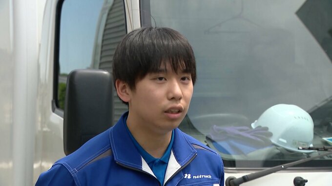 高卒2年目ドライバー 小濵遥斗さん「周りも進学している子たちが多かったので、やっぱり自分だけ社会人というプレッシャーがありましたね。小学生の時から大きいトラックを運転するのにあこがれて自分も運転が好きなので、大型トラックドライバーを目指して今、頑張っています」