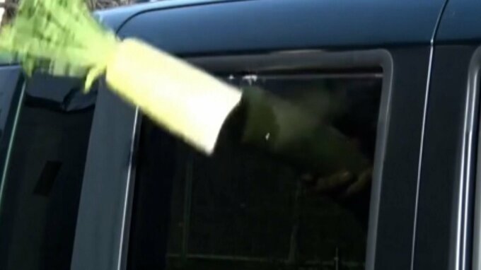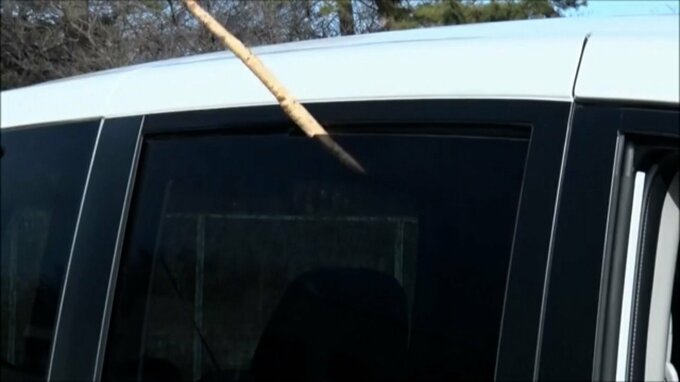 車体の窓に挟んだゴボウ。パワーウィンドウが閉まると…ばっさりと切断されました。
