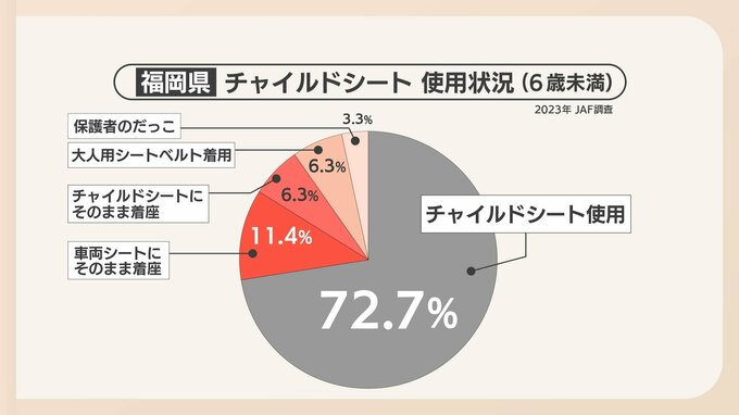 JAF福岡支部 城野衣里加さん「2023年にJAFが行った全国調査では、福岡県では約3割の方がチャイルドシートを正しく使用できていないという結果になっています。どうしても子供が嫌がって泣いてしまうという声もありますが、命の方が大事ですので、ベルトで固定して、しっかりと動かないことを確認していただくようにお願いします。」