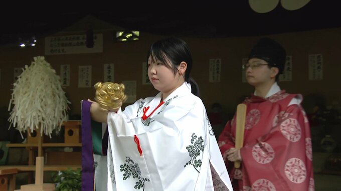 参列した人は、1人ずつ玉串を捧げ、それぞれの願い事を胸に手を合わせていました。