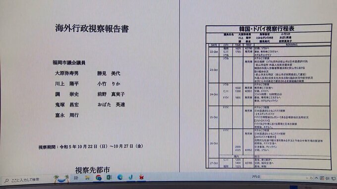 一方、去年10月にドバイを視察した福岡市議会は、ホームページ上に報告書を掲載。
