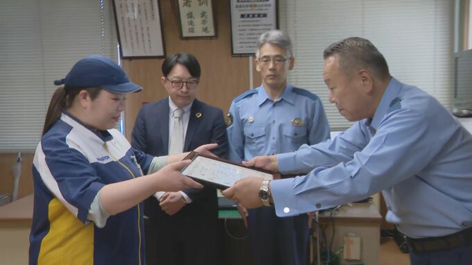 68歳の男性がニセ電話詐欺の被害に遭うのを未然に防いだコンビニエンスストアの店員の女性に、5日、警察から感謝状が贈られました。