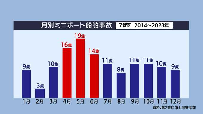 第7管区海上保安本部によりますと2021年、管轄する北部九州の海域では24件のミニボートの事故が発生。