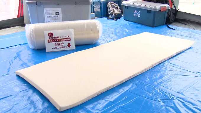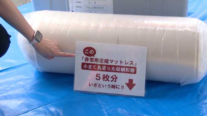 災害時、避難所などで体への負担を減らすために開発された商品も展示されています。