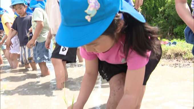 「ヌルヌルしてて楽しい」園児が田植え泥の感触楽しむ 農業高校の実習田で 2024年6月12日(水) 11:55 国内 保育園児や高校生が、田植えを通じて自然や農業の大切さを学ぶ交流会が、佐賀県で開かれました。12日午前、佐賀県白石町の佐賀農業高校の実習田で開かれた体験交流会には、高校生と、保育園やこども園の園児約1…