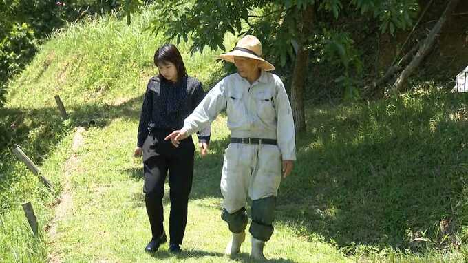 「ここの道をですね草刈りしよったら、なんか変わったのがおるよっていって、ポンッと飛んだらしいんですよ」