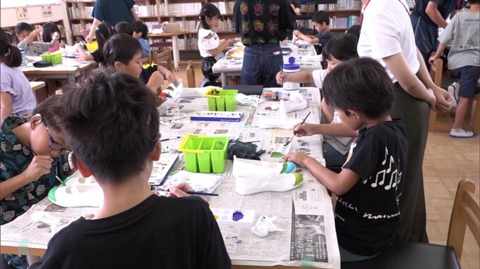 聴覚に障害がある子供たちが上履きに色を塗って自分らしさを表現するワークショップが13日、福岡市で開かれました。
