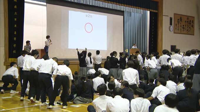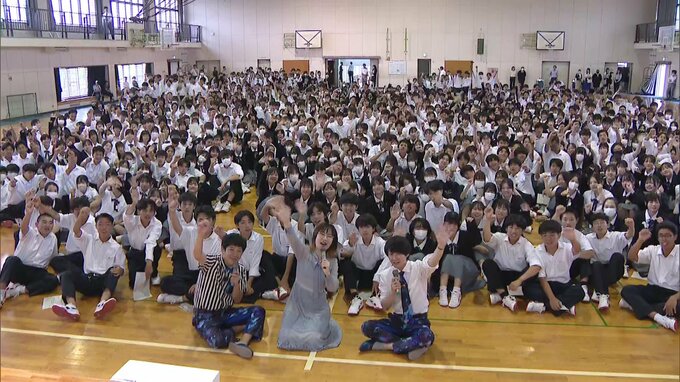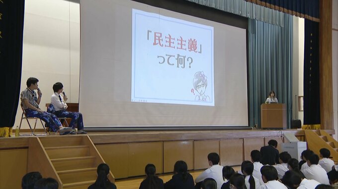 古賀市の玄界高校で「笑える政治教育ショー」を開催したのは若者の政治参画を目指す「笑下村塾」の代表でお笑いタレントのたかまつななさんです。