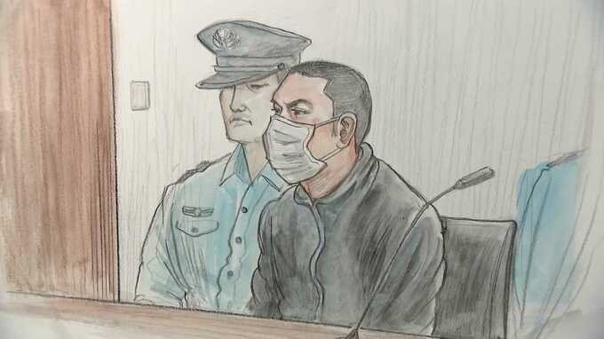 17日、短い黒髪姿で法廷に現れた寺内進被告。本人確認など裁判長の問いかけには、落ち着き、小さな声で淡々と答えました。