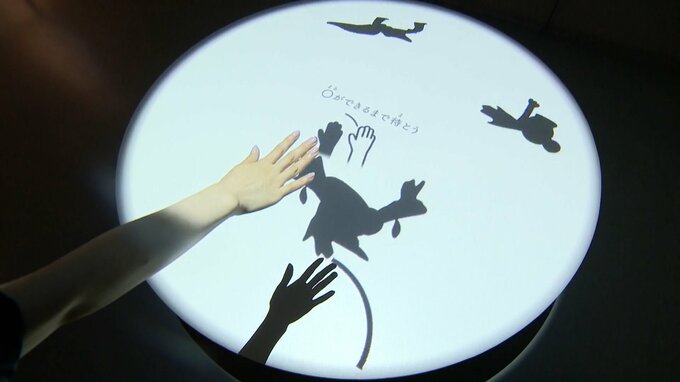 また、こちらは光に手をかざして待つと、まるで命を吹き込まれたように影が動き出します。子供たちは手で様々な「影絵」を作って楽しんでいました。