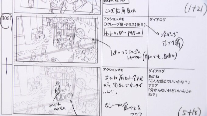 演出に対する細かな指示が書き込まれた絵コンテや、スタッフがキャラクターを描く際にどのような部分にこだわったかなど制作の裏側を知ることができます。