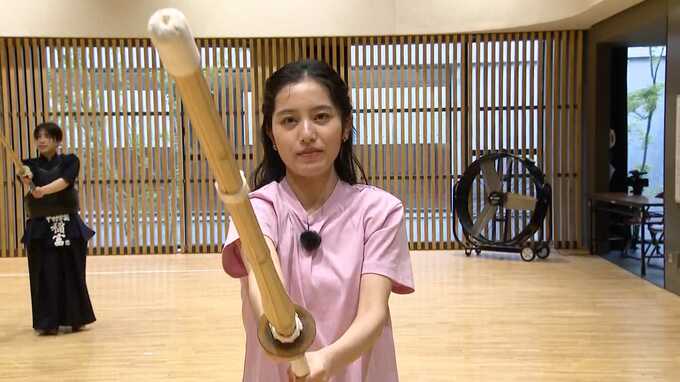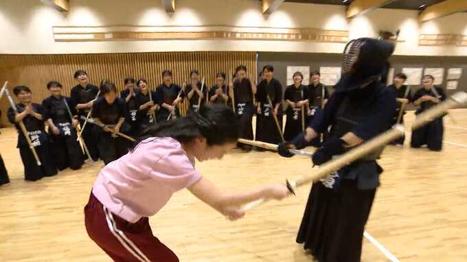 剣道未経験のため、まずは基本の素振りを教えてもらい、10回振ってみると…