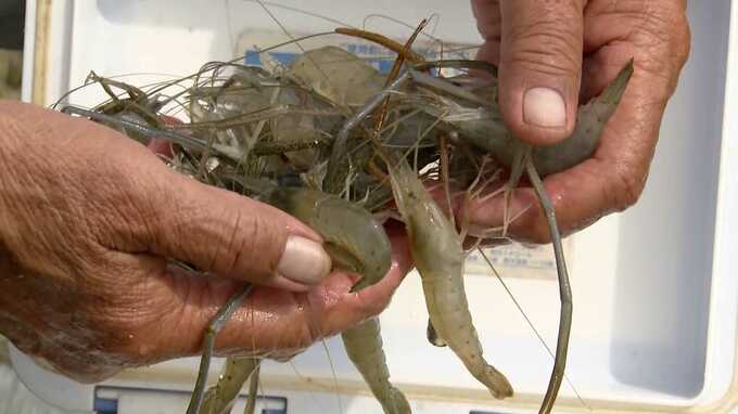 (釣り上げた2匹目に指を挟まれる)「あー痛え、あ、痛っ、痛いて…エビに挟まれて、出血する事もある」