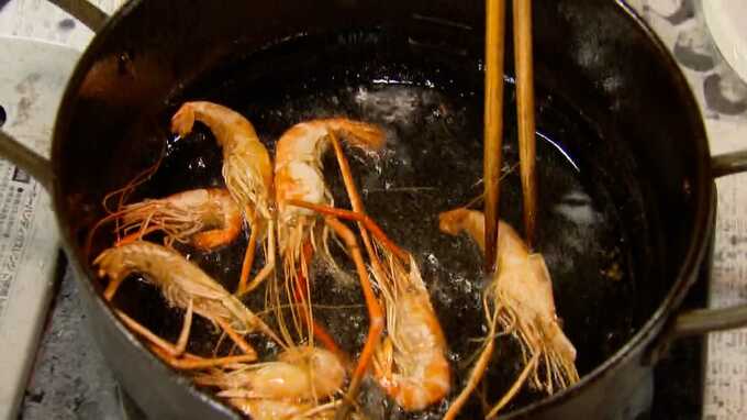 テナガエビを揚げながら