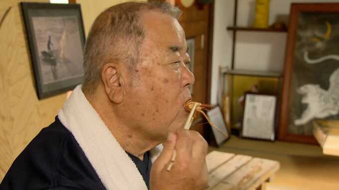 福岡・八女市の小柳さんの友人宅。今が旬のテナガエビを素揚げしていただきます。