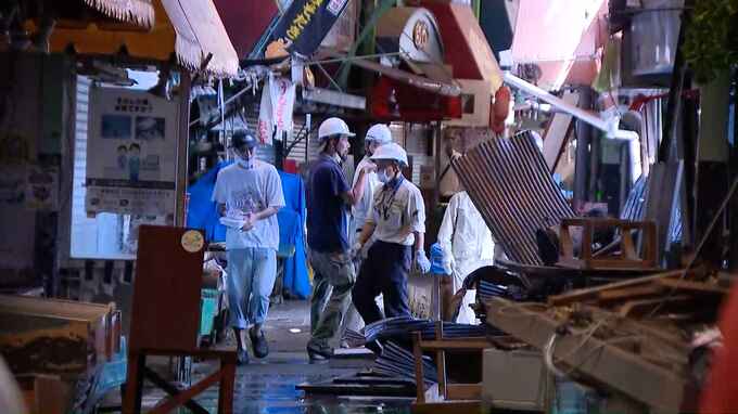 北九州市小倉北区の旦過市場一帯では15日も朝から店の関係者たちが片付け作業に追われていました。