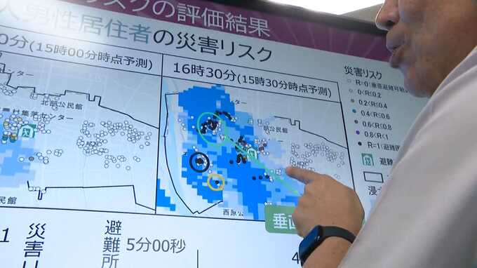 「住民Aという方は、3時半の時点では『まだ逃げられる』状況。水害が発生すると水に覆われてしまうので、避難所に行くのに逃げる時間がだんだんなくなるんですよね。4時半になると、黒丸の人は『逃げられない人』を指しているんですよ。避難開始をこの時間にしておかないとあなたたちは逃げられませんよ、というのが6時間くらい前からわかる」