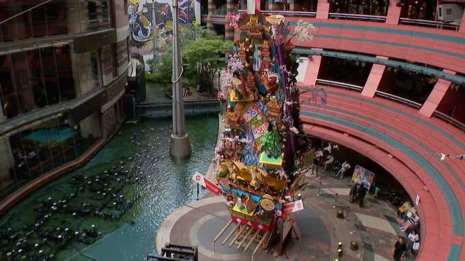 【博多祇園山笠】豪華絢爛 今年の飾り山笠 福岡ドーム・キャナルシティ博多 2024年7月10日(水) 16:40 国内 キャナルシティ博多 表標題 刀伊入寇隆家勲(といにゅうこうたかいえのいさおし) 見送り標題 光源氏胡蝶舞宴(ひかるげんじこちょうまいのうたげ)