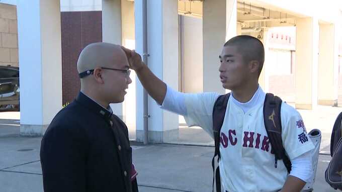 野球部初戦は7月5日。普段は丸刈りがトレードマークの梅原さんが、頭をきれいに剃り上げて登校していました。