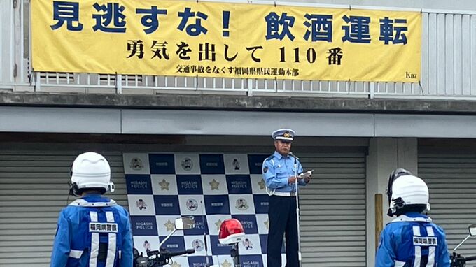 1日、福岡市東区の福岡県警東警察署で行われた「飲酒運転取締り出陣式」には警察官や関係者44人が参加しました。
