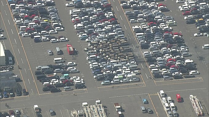 火が出たのは、輸出する車を保管する場所で、消防によって火は3時間半ほどで消し止められましたが、およそ50台の車が焼けました。