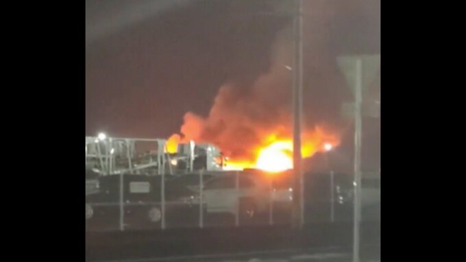 激しく燃える炎と噴き出す大量の黒煙。