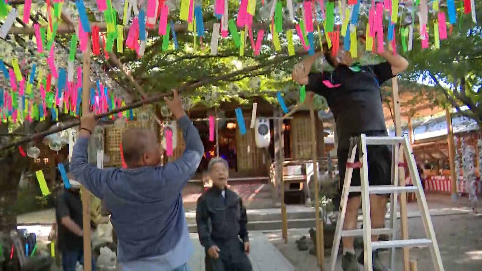 恒例の風鈴まつりを開催していた福岡県小郡市の如意輪寺では、住職や近所の人達が参道や境内に飾っていたおよそ7500個の風鈴を撤去する作業に追われました。