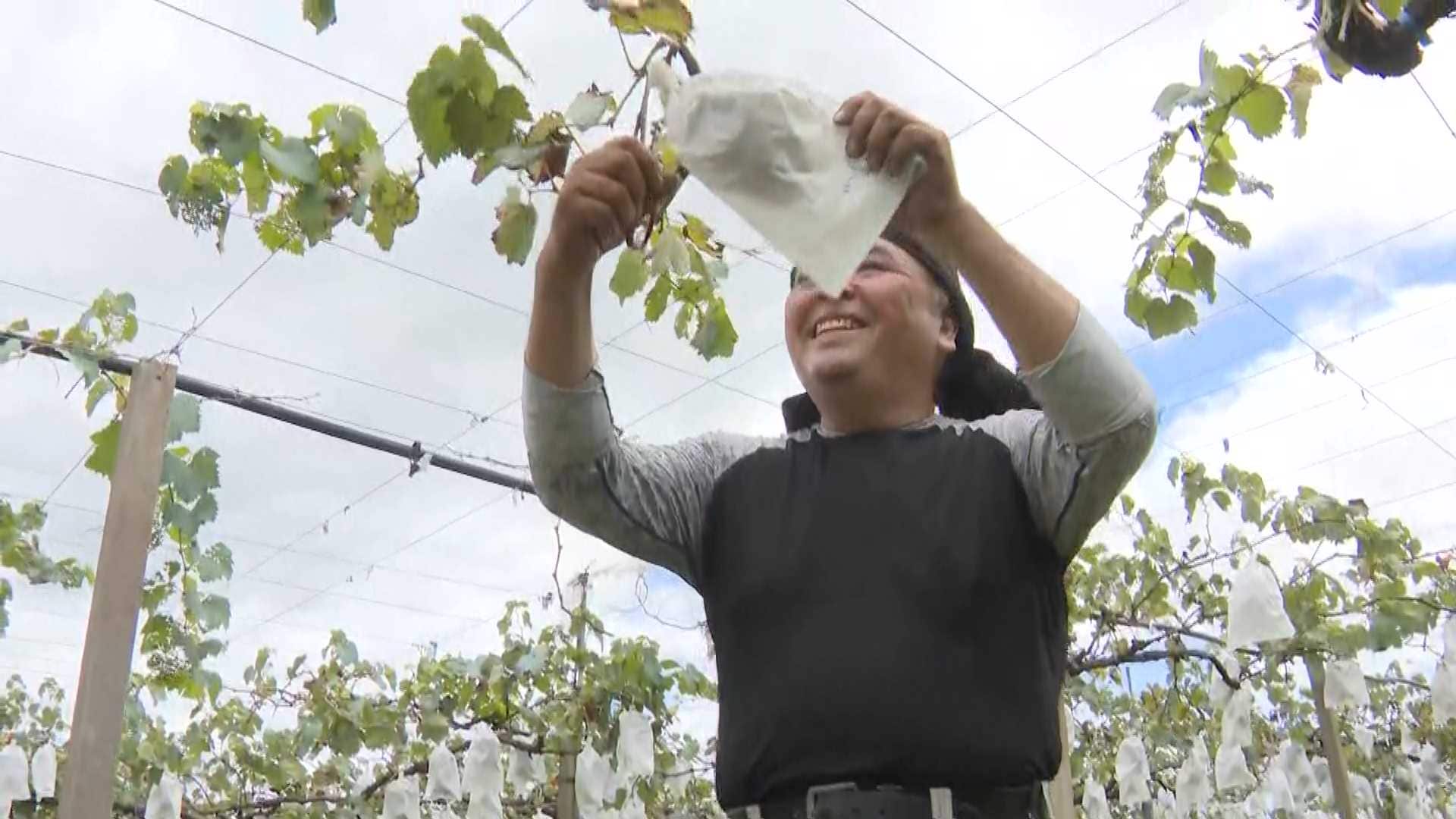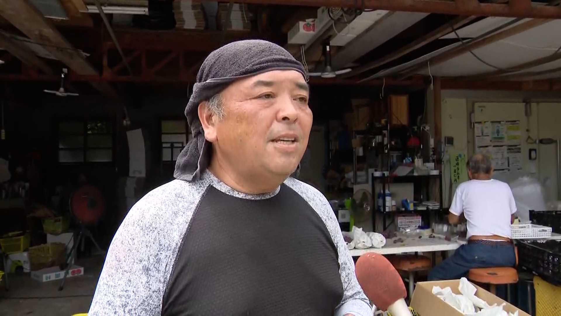 池尻農園 池尻和博さん「楽観的に思っていたのですが、直近の予報を見ると非常にまずいかなと、急遽収穫量を増やしました。通常の1.5倍、100箱(約500房)ぐらいまで出荷を目指したい」