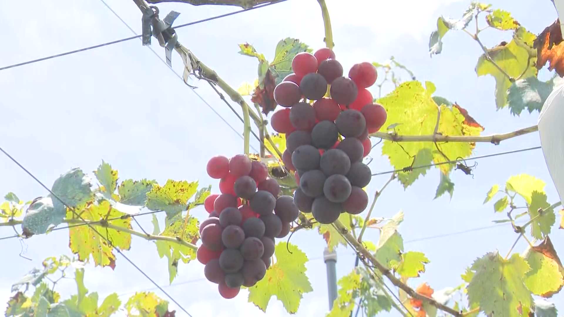 今が旬の巨峰がたわわに実る久留米市田主丸町の果樹園。