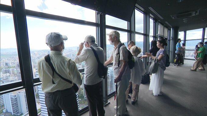 地上123メートルにある展望室では、景色を眺めながら家族と記念写真を撮る高齢者の姿が見られました。