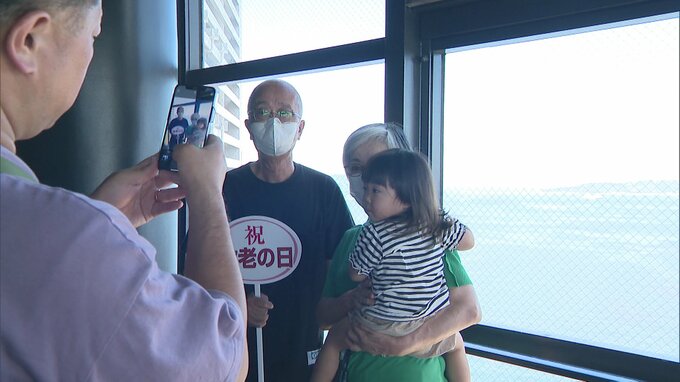 福岡市早良区の福岡タワーでは、16日、敬老の日にちなんで65歳以上の人たちは展望室の入場料金を無料に、同伴者は1割引きとなるイベントを開催しています。