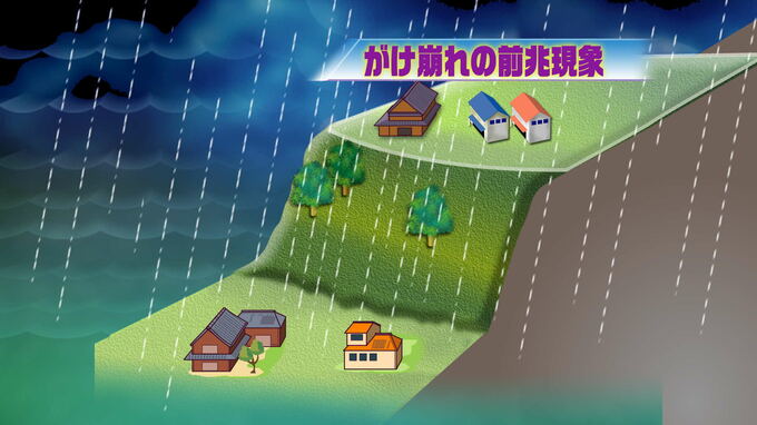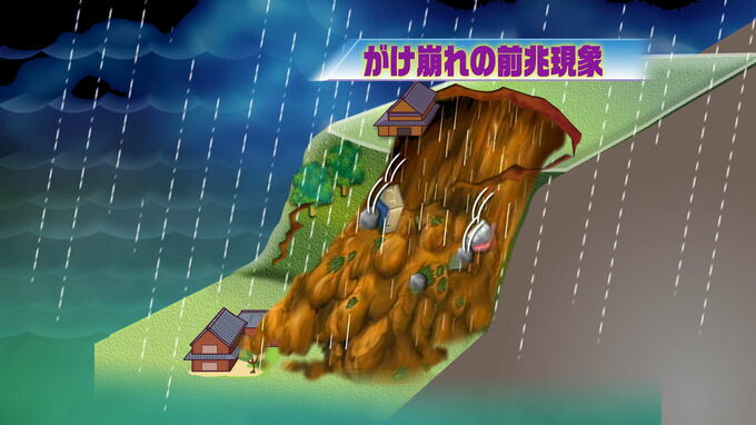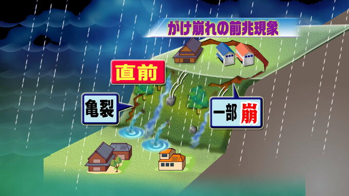 がけ崩れ発生の直前には、がけに亀裂が入り、一部が崩れます。