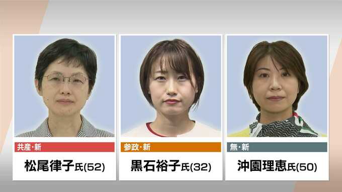 福岡2区にはこのほか共産党・新人の松尾律子氏(52)参政党・新人の黒石裕子氏(32)無所属・新人の沖園理恵氏(50)が立候補を予定しています。
